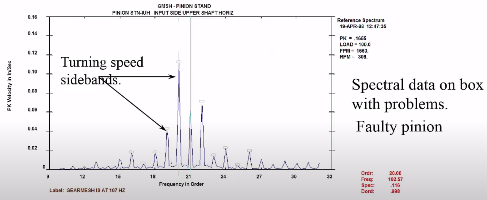 기어에 적힌 맞물림 주파수의 경우 기어 이빨 수의 곱으로 정해진다. 예를 들어 기어의 이빨 수가 100개고 회전수가 60Hz면 6000Hz의 3배는 측정할 수 있어야 한다는 것이다. 하지만 모든 구성요소를 기준에 맞춰 측정하는 것은 현실적으로 어렵기 때문에 처음 측정할 때는 모터 회전수의 70배 정도가 적당하다. 그러면 대부분의 주파수를 담을 수 있다.