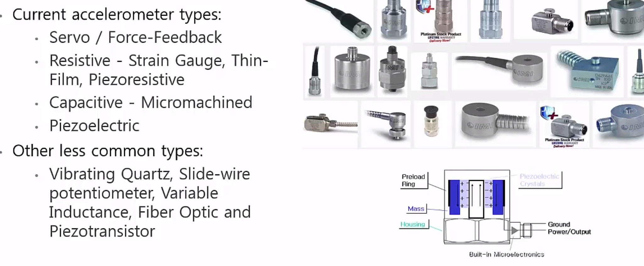 가속도 센서는 다양하게 선택 가능. 변위센서는 저주파만 측정 가능. 속도센서는 일정 주파수에서만 측정 가능해서 거의 쓰이지 않음. 가속도 센서로 가속도와 속도를 모두 구하는 것이 일반적이다. 서로 다른 센서로 값을 변환시켜서 사용하는 것은 좋지 않다.