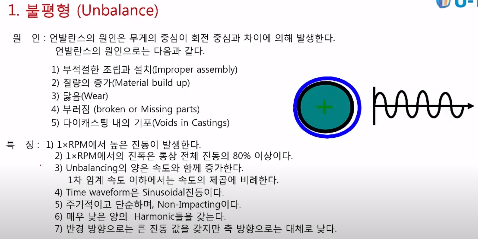 1. 불평형 (Unbalance) : 불평형의 원인은 무게의 중심과 회전 중심의 차이에 의해 발생한다. 한쪽에 질량이 쏠려 있으면 발생한다.