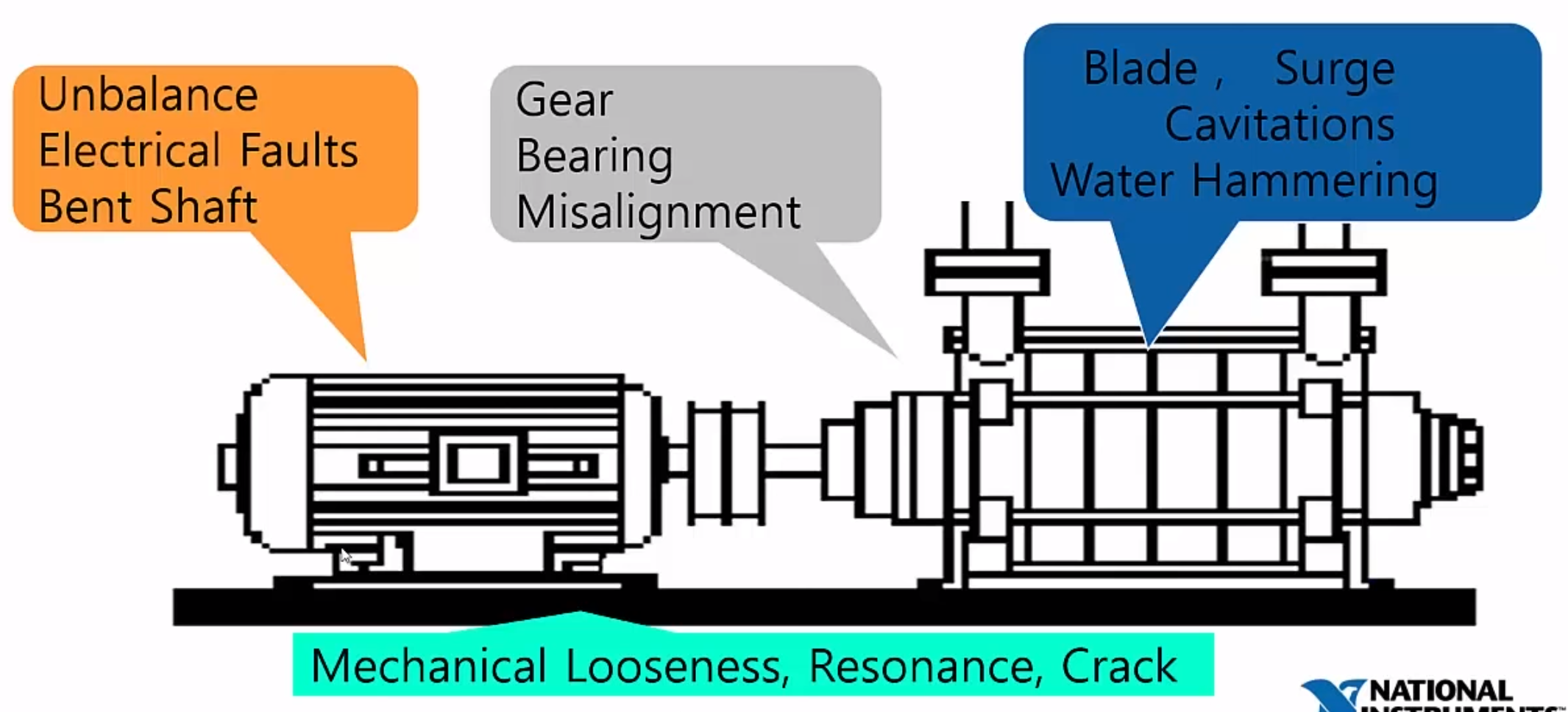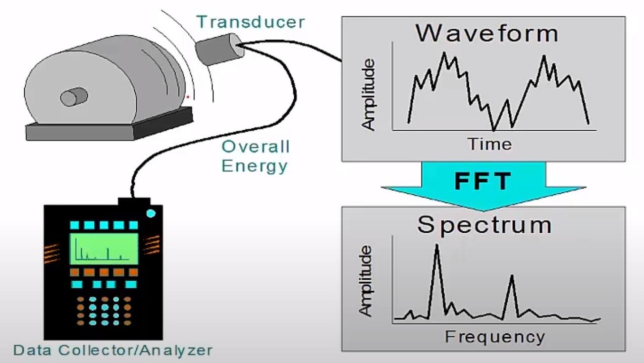 설비가 파손되기 전에 진단을 하는 과정에서 확인하는 데이터들. 각 데이터별로 탐지할 수 있는 이상 발생 시기가 다르며, 진동은 그중에서도 매우 빠르게 확인할 수 있는 데이터이다.
