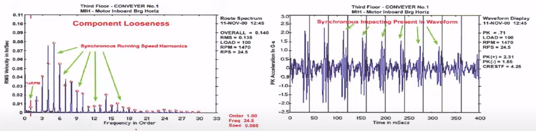 3. 느슨함 (기계적 이완 - Mechanical Looseness) : 볼트가 떨어지거나 Crack이 간 경우. 하지만 보통 볼트가 떨어져 있는 채로 공정하는 경우는 없기 때문에 Crack으로 보는 경우가 적합.