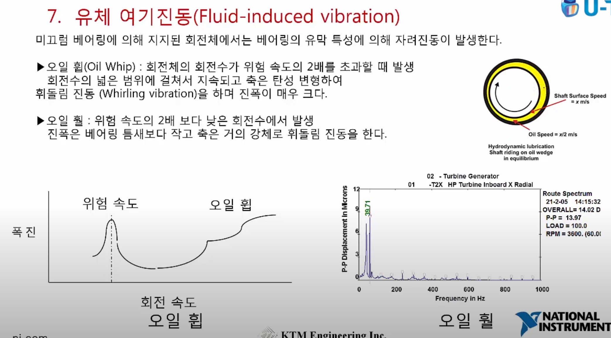 7. 유막 있을 때. slip은 액체가 채워져 있고 돌면서 따라 돈다. 축보다 빨리 돌진 않으므로 낮은 주파수대에서 확인된다.