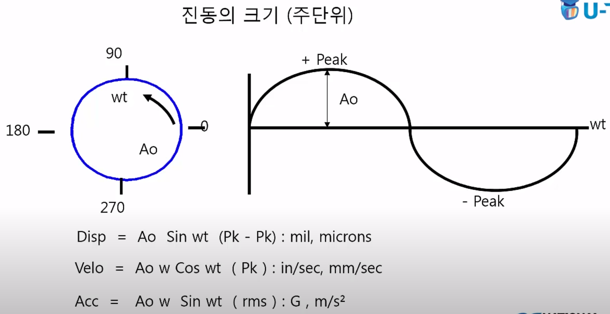 - 가속도(Acc) : Ao w^2 Sin wt (rms) : G, m/s^2